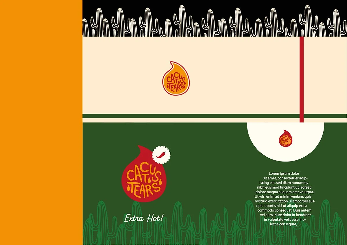 Developed a spicy, playful visual identity for a fictional hot sauce brand called Cactus Tears, emphasising heat, flavour, and Southwest desert inspiration.
